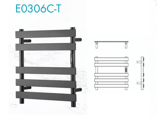 6杆时控开关电热毛巾架 6 bar time switch heated towel rail 材质Material:SS201/SS304 功率Power:220V/160W 表面Surface:Black Painted 黑色喷塑 尺寸Size:550*120*540mm 包装Ctn size:570*60*570mm